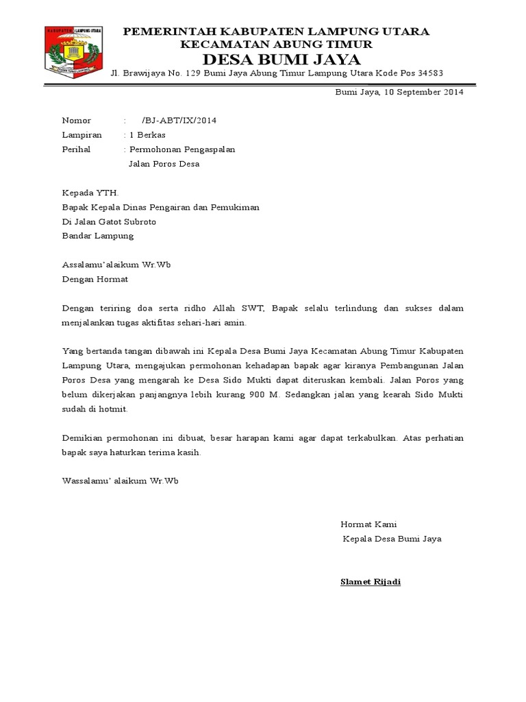 Contoh Surat Permohonan Jalan Lingkungan - Contoh Surat Permohonan Jalan Lingkungan Contoh Proposal Pembangunan Jalan Desa Gambaran. Kami memberikan beberapa macam contoh surat pengantar yang mungkin sesuai dengan anda yang cari. Jan 29, 2021 · dalam pembuatan surat permohonan data, kita harus menuliskan untuk siapa surat ini di buat. Namun apabila surat tersebut kepada orang yang spesifik, maka anda bisa menuliskan namanya langsung lengkap dengan gelar yang dimiliki. Jun 26, 2021 · surat permohonan berisi permohonan atau permintaan sesuatu kepada pihak lain. Umumnya surat tersebut akan ditujukan ke bagian pimpinan, ketua, ataupun pihak pengelola.